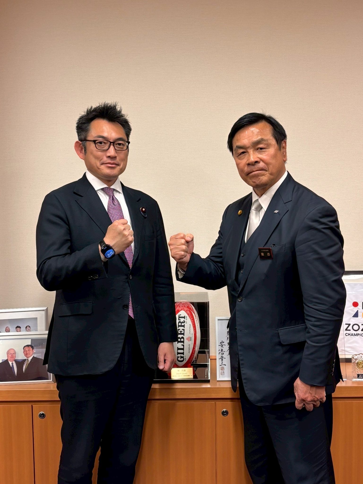 →先の選挙でも支えて頂いた川井大輔先生や両国高校後輩、全国団体、都団体の幹部達と写真撮影。大きな課題に取り組んで参ります。