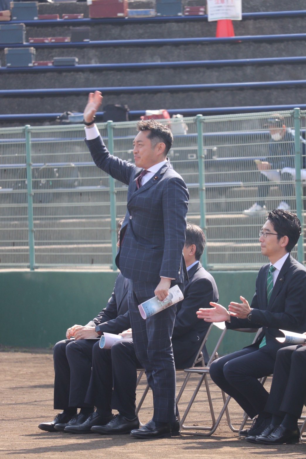 町田市少年野球春季大会開会式では、ピッチャー佐藤議長、バッター稲垣市長の始球式。動画も載せておきますが、議長の球威はしっかりと確認できます。