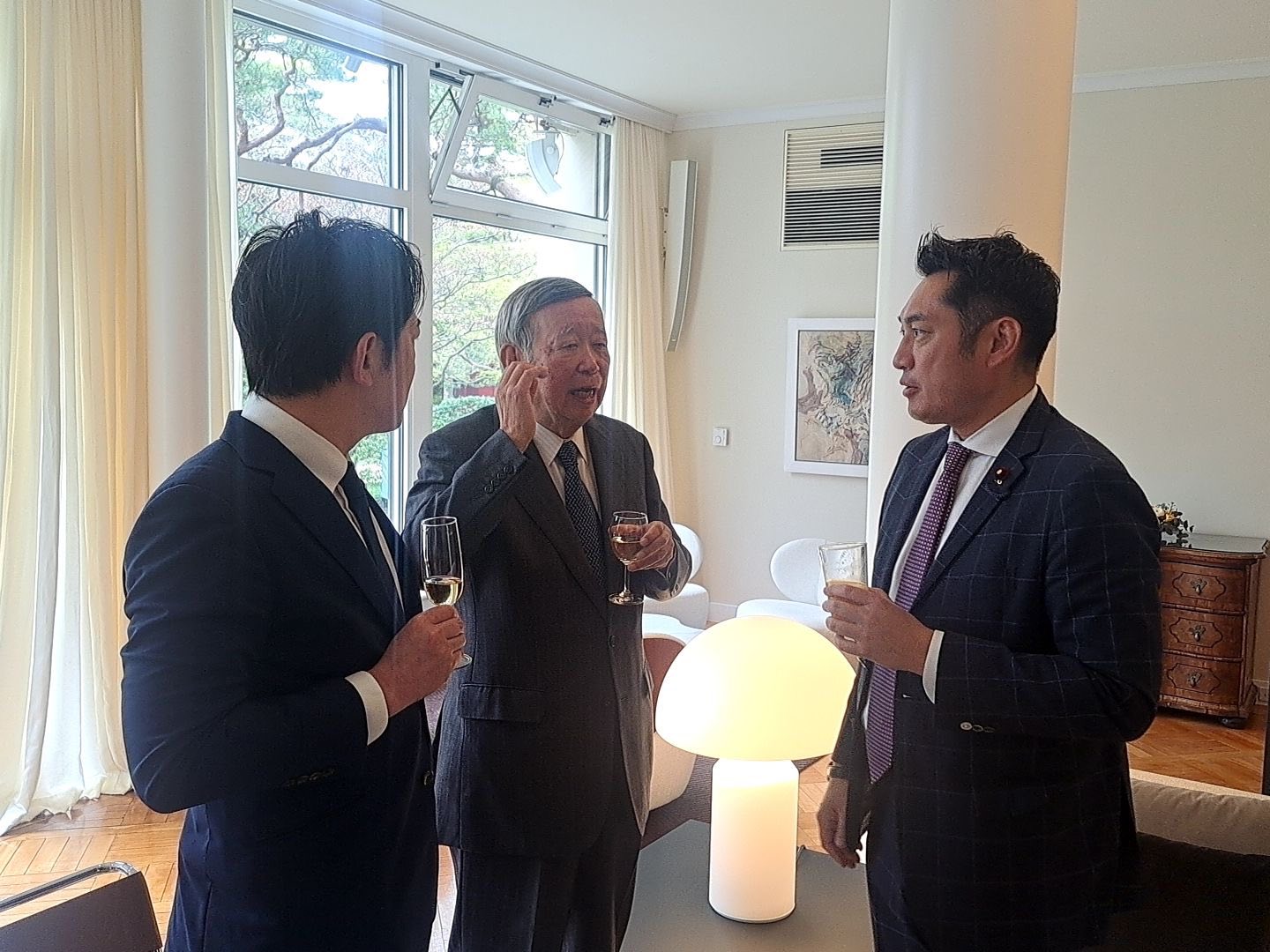 1日は、在日ドイツ大使館へ。議員連盟を率いてきた川崎二郎元代議士と懇談。